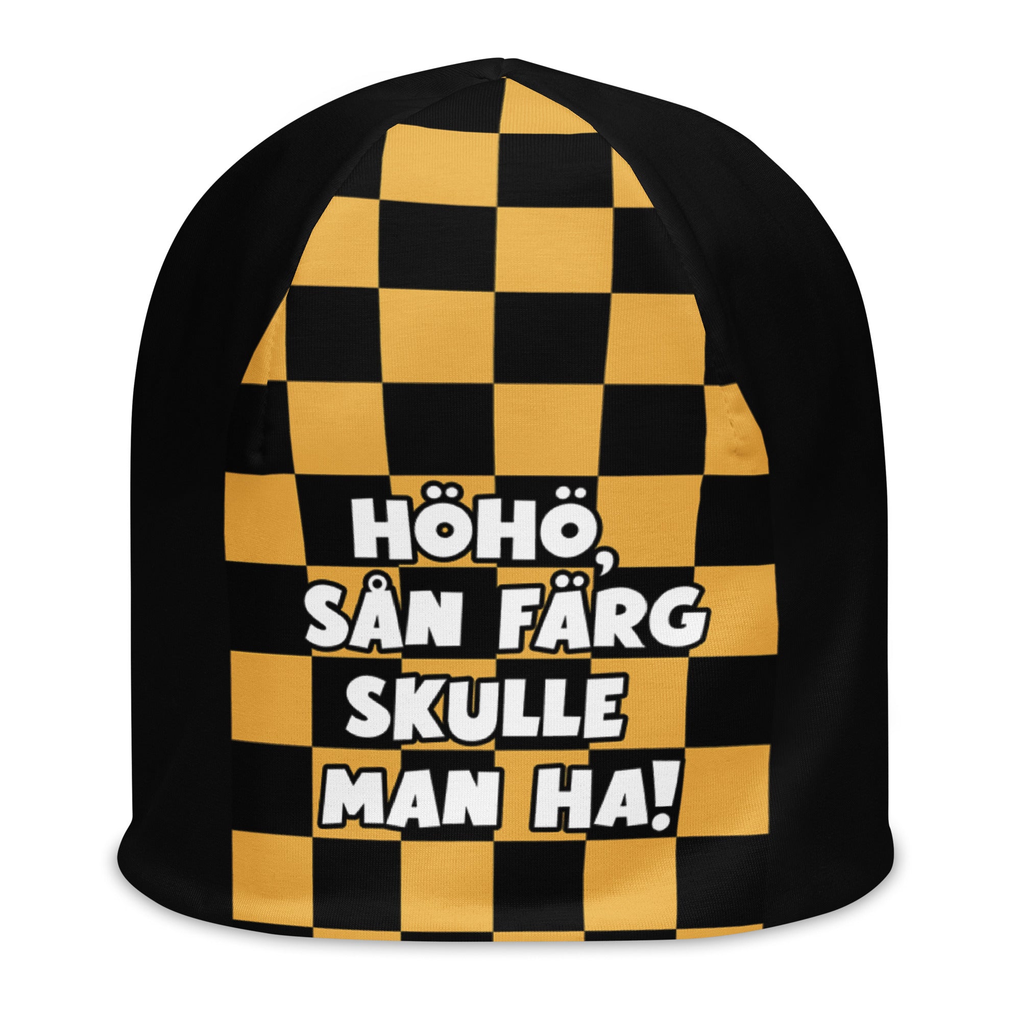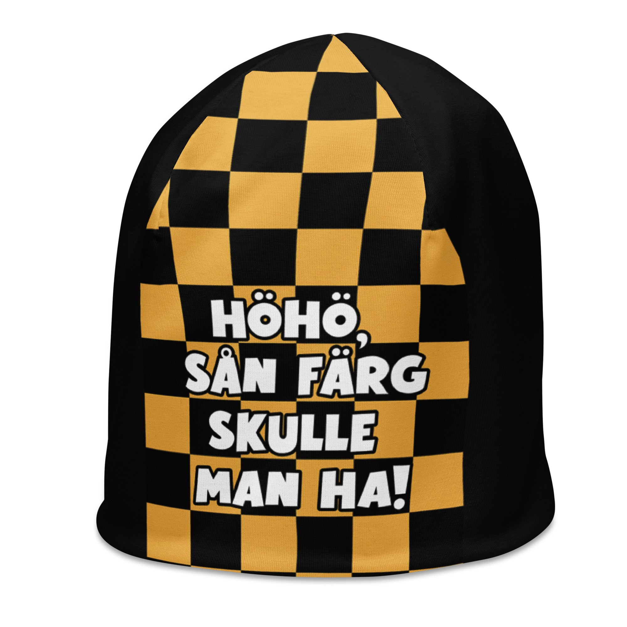 Gör dig redo att ta dig an vintern med både värme och humor! Den här mjuka och dubbellagrade beaniemössan kombinerar den ikoniska rutiga designen med frasen som fått halva Sverige att le: “Höhö, sån färg skulle man ha!”. Perfekt när du vill synas lite extra i vinterrusket, hålla skallen varm eller bara sprida god stämning vart du än går.